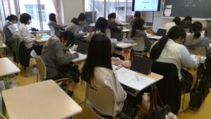 定期考査を目前に控えた教室では、どのクラスも真剣な雰囲気に包まれています。生徒たちはこれまでの学習内容を振り返り、分からないところを友人や先生に積極的に質問する姿が見られました。放課後も自主的に残って学習する生徒も増え、学習に対する意識の高さが感じられます。定期考査に向けて、努力の成果が実を結ぶことを願っています。