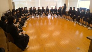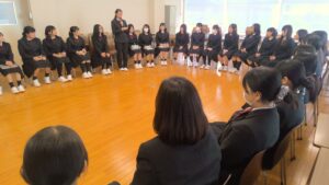 先輩からの歓迎に対して、新入生からは決意の挨拶がおこなわれました。特進コースの生徒としての自覚を持ち、勉学に勤しむ決意を述べてくれました。