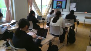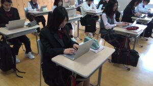 初めての「情報Ⅰ」の授業ではゲームを使ってタイピングに取り組みました。今後CBT方式の検定などを受験する機会も多くなっていきます。その基礎となる技術を身に付け、存分に力を発揮できる環境を作ってほしいと思います。